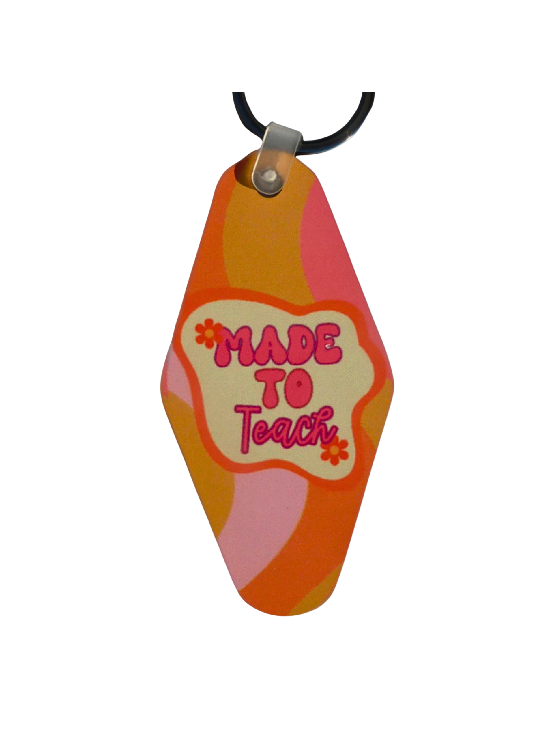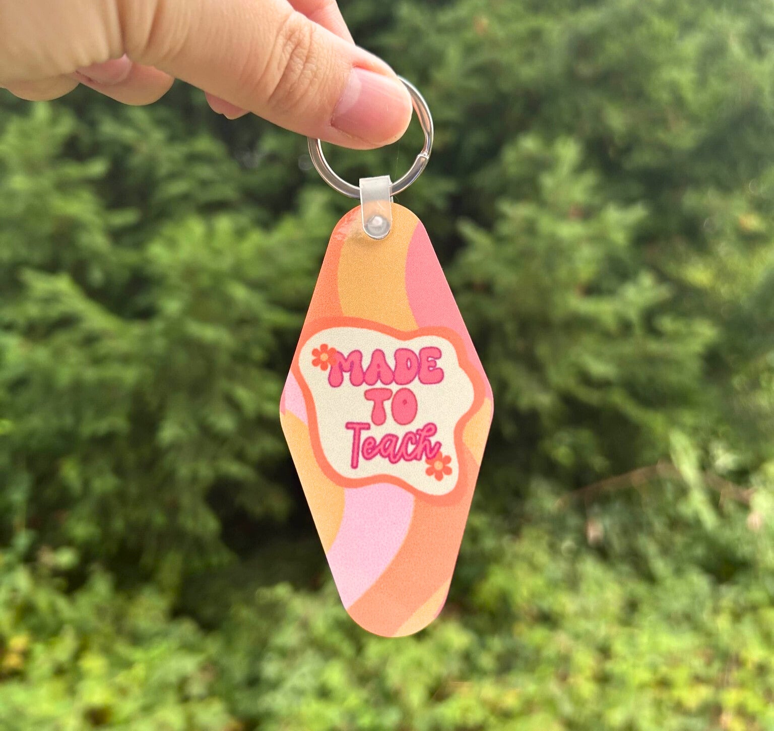Retro Motel Style Teacher Keychain: 'Made to Teach' Design